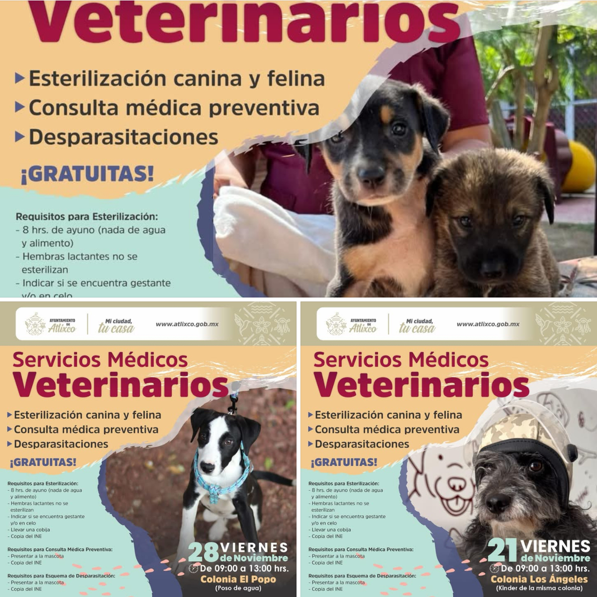 La presidenta de Atlixco, Ariadna Ayala, a través de la Secretaría de Bienestar Animal, realizará jornadas de Servicios Médicos Veterinarios Gratuitos para promover el bienestar animal y la tenencia responsable de mascotas.