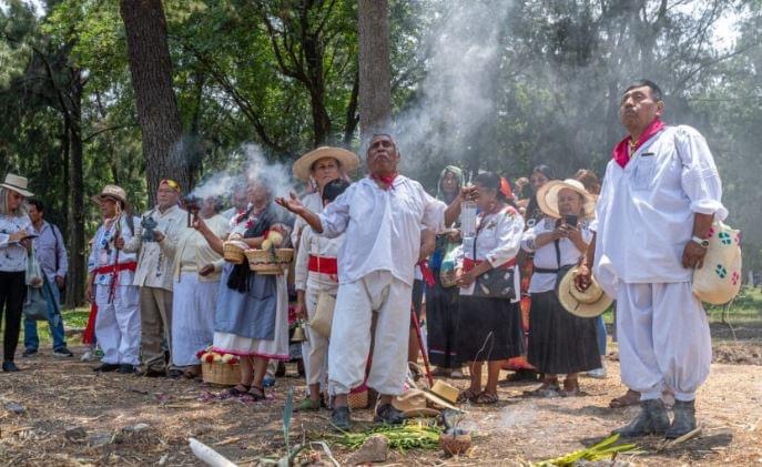 Con cantos, oraciones, flores y semillas, la gente realiza una caminata desde la comunidad hasta llegar a la parte alta del cerro, donde realizan la ceremonia a cielo abierto, para pedir por que las lluvias sean constantes pero abundantes durante el año 2024, toda vez que en 2023, fueron mínimas o reducidas.