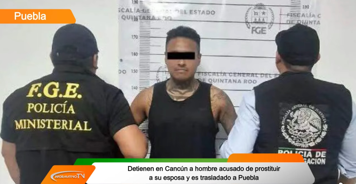 Detienen en Cancún a un hombre acusado de prostituir a su esposa y es trasladado a Puebla