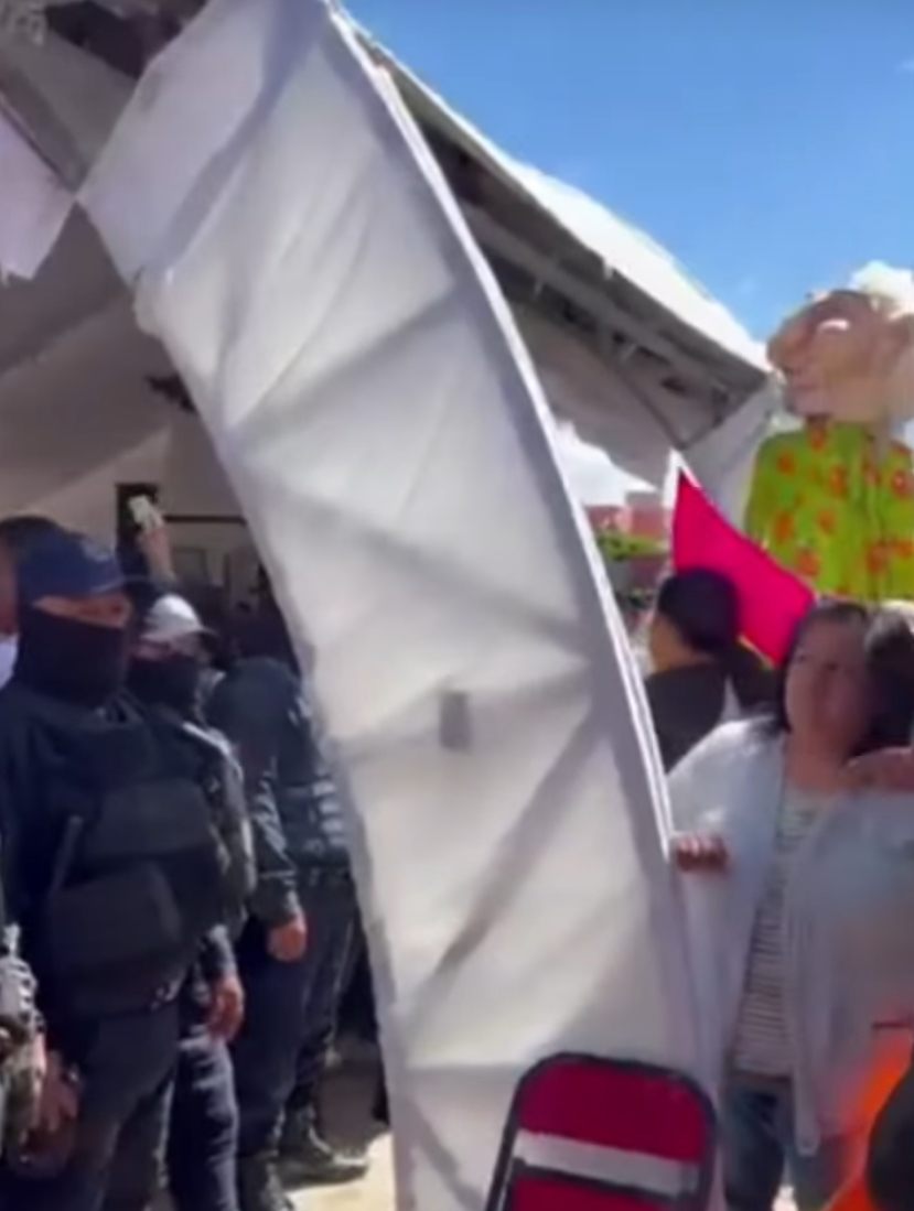 Habitantes del barrio de San Rafael acudieron al Informe de Gobierno de la alcaldesa Guadalupe Bárcenas para manifestar su inconformidad ante presuntas irregularidades en la distribución de apoyos municipales.